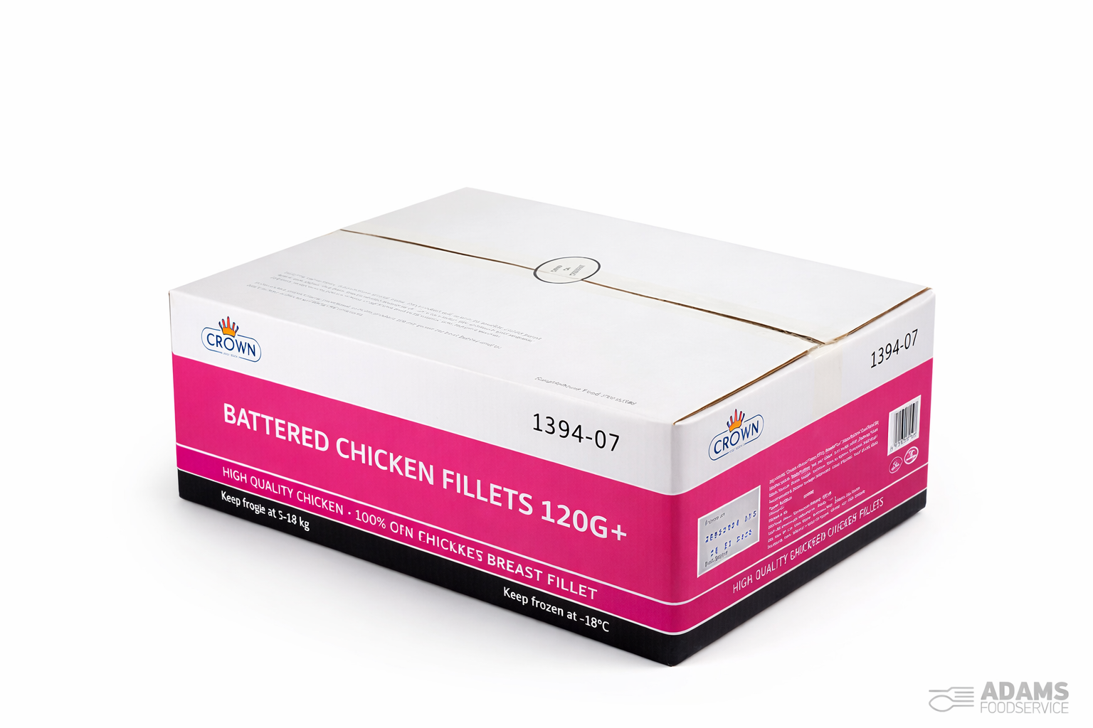 Crown Battered PB Chicken Burger – Pack of 18 x 120g. Crispy battered chicken patties, perfect for burgers.