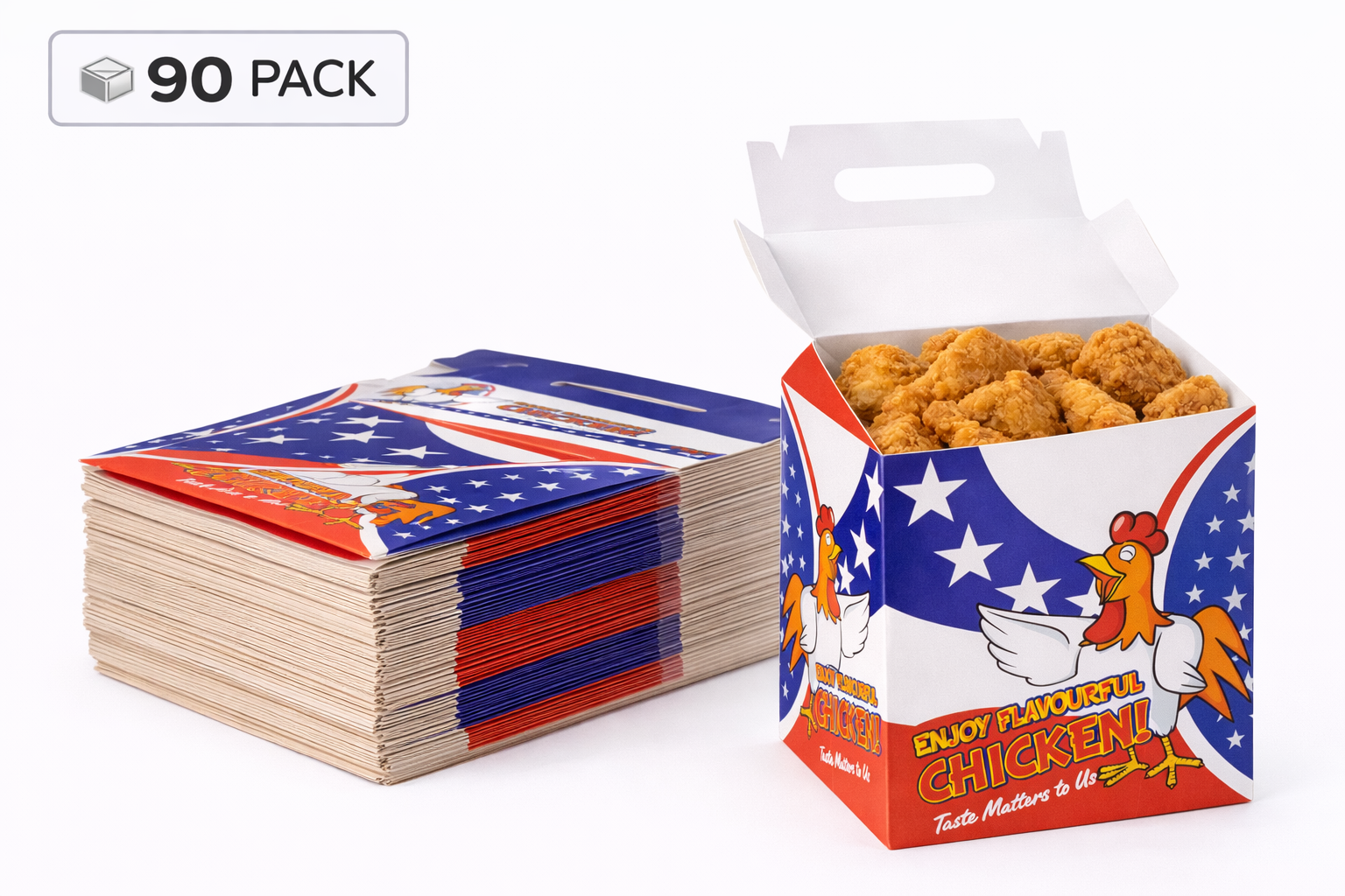 The (FC4) ADZ Star Square Family Buckets are high-capacity, food-grade paper buckets designed to hold large portions of fried chicken, wings, chips, and combo meals. With a strong, leak-resistant build and eye-catching ADZ Star branding, they’re perfect for fast food takeaways, chicken shops, and catering outlets looking to present family-sized meals attractively and securely.