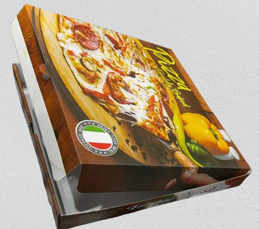 Vibrant and sturdy Full Colour Pizza Box, designed to keep your pizza fresh while showcasing your brand.