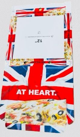 ADZ UK Flag Pizza Box 12''– 1 sturdy, branded box ideal for serving or delivering pizzas with style and protection.