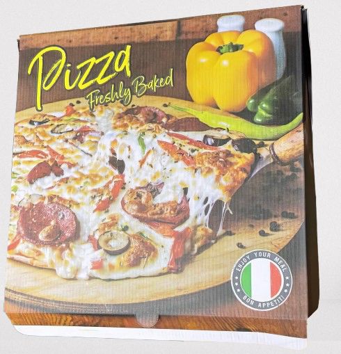 This Full Colour Pizza Box offers durable protection with eye-catching, full-colour printing that elevates your pizza presentation. Perfect for takeaway and delivery, the box is made from high-quality, grease-resistant cardboard to ensure your pizza stays hot and intact. Ideal for pizzerias and food vendors who want to make a lasting impression with attractive packaging.