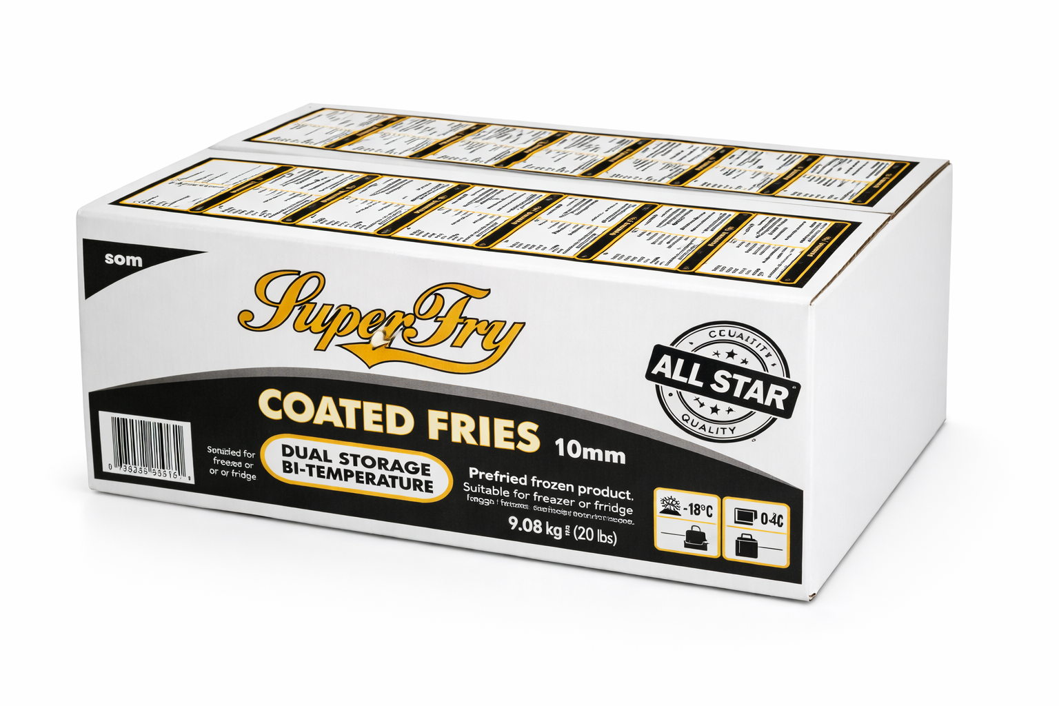 Elevate your menu with All Star Black Box Coated 3/8 (4x2.25) Fries, crafted from high-quality potatoes and coated to perfection. These skin-on fries deliver a satisfying crunch and a rich, authentic taste, making them a perfect side dish or snack. Ideal for fast food outlets, restaurants, and catering services, they offer consistent quality and performance. The 4x2.25 cut size ensures optimal cooking time and portion control.