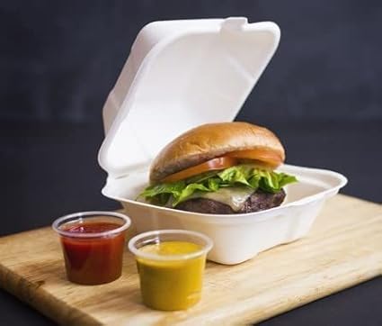 Eco-friendly and sturdy 6" bagasse burger boxes—ideal for serving hot or cold foods in takeaways, food stalls, and catering events.