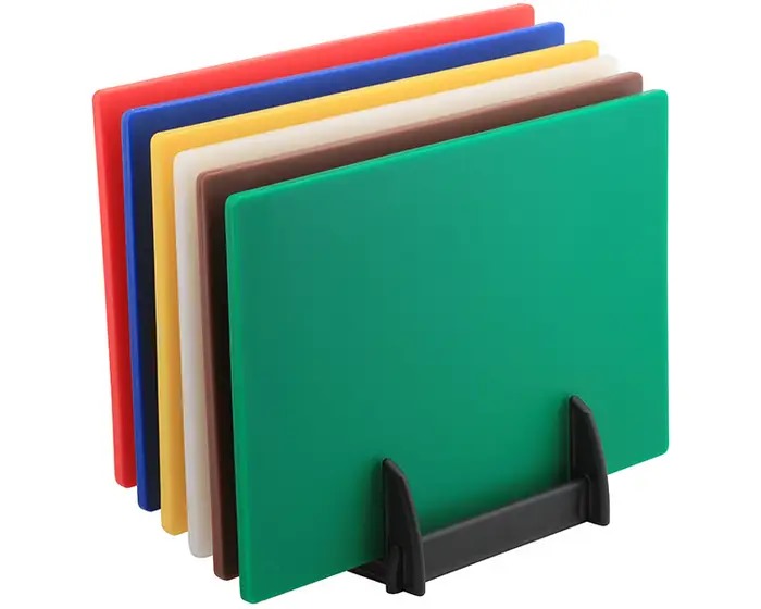 This 18x12x0.5" Cutting Board offers a reliable and hygienic surface for all types of food preparation. Made from high-density polyethylene (HDPE), it's strong, non-absorbent, and resistant to deep cuts. Colour-coded options help maintain food safety standards by preventing cross-contamination between raw meats, vegetables, fish, and other ingredients.