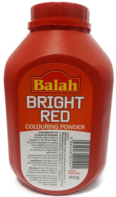 Bright Red Food Colour – 400g. Intense, vibrant red food-grade colour perfect for baking and culinary creations.