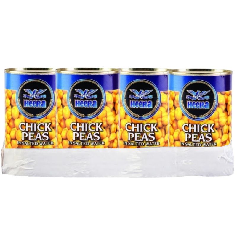Bulk pack of Heera Boiled Chick Peas—6 tins of 2.6kg each—ideal for restaurants, catering services, and food manufacturers seeking convenience and quality.