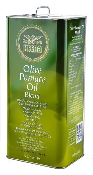 Heera Pomace Olive Oil 5L – A blend of 51% olive pomace oil and 49% vegetable oil, ideal for high-heat cooking and frying.