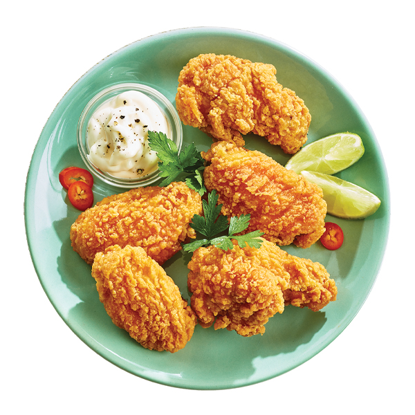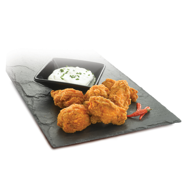 Spice up your menu with Hot 'n' Kickin' Halal Chicken Wings, a crowd-pleasing favorite known for their bold flavor and convenience. These fully cooked chicken wings, comprising first and second joints, are coated in a hot and spicy breadcrumb seasoning, then flash-fried and individually quick frozen (IQF) to lock in taste and freshness.