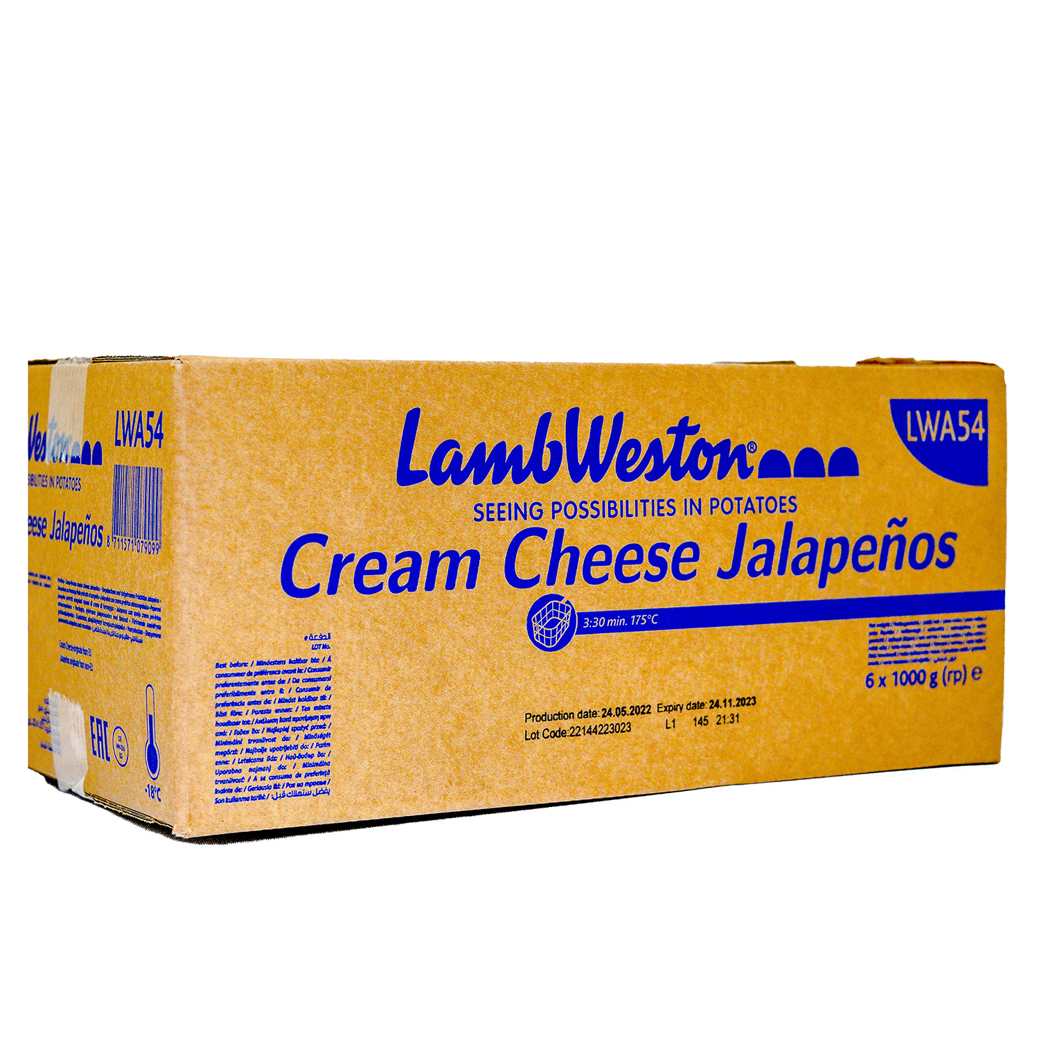 Lamb Weston Cream Cheese Jalapeños – 1kg of crispy, spicy bites filled with smooth cream cheese.