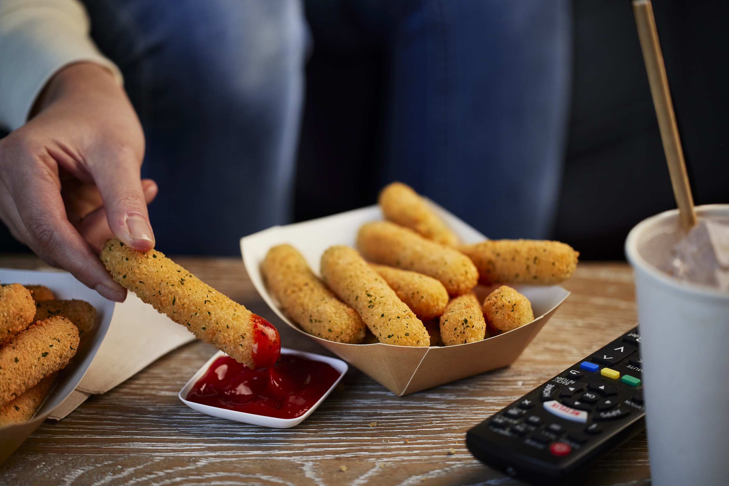 McCain Mozzarella Cheese Sticks 1kg – crispy, seasoned breadcrumb-coated mozzarella sticks, perfect for starters, bar snacks, or sharing platters.