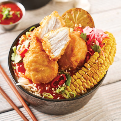 Crispy, golden battered chicken fillet bites from Meadowvale — tender, juicy, and perfectly portioned at 30g each.