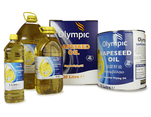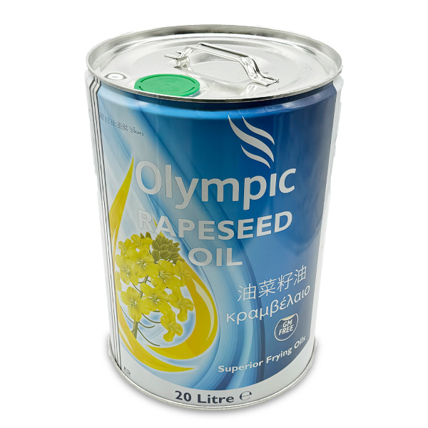 Olympic 100% Pure Rapeseed Oil – 20L Blue Tin. High-quality, versatile cooking oil for professional kitchens.
