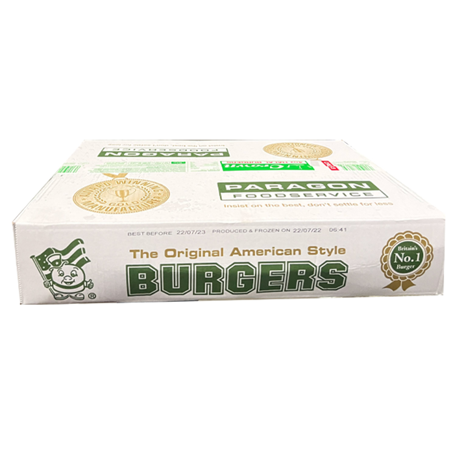 Packaging: Bulk box containing 48 individually frozen patties