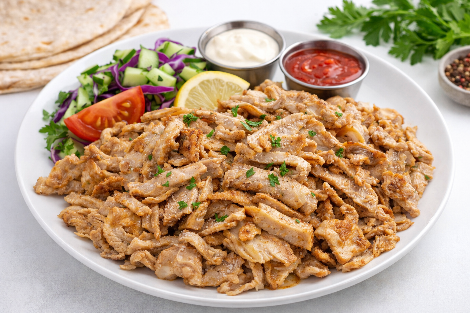 Premium sliced chicken shawarma, pre-roasted and ready to heat. Perfect for wraps, kebabs, loaded fries, and fast-food menus, delivering authentic shawarma flavour with quick preparation.