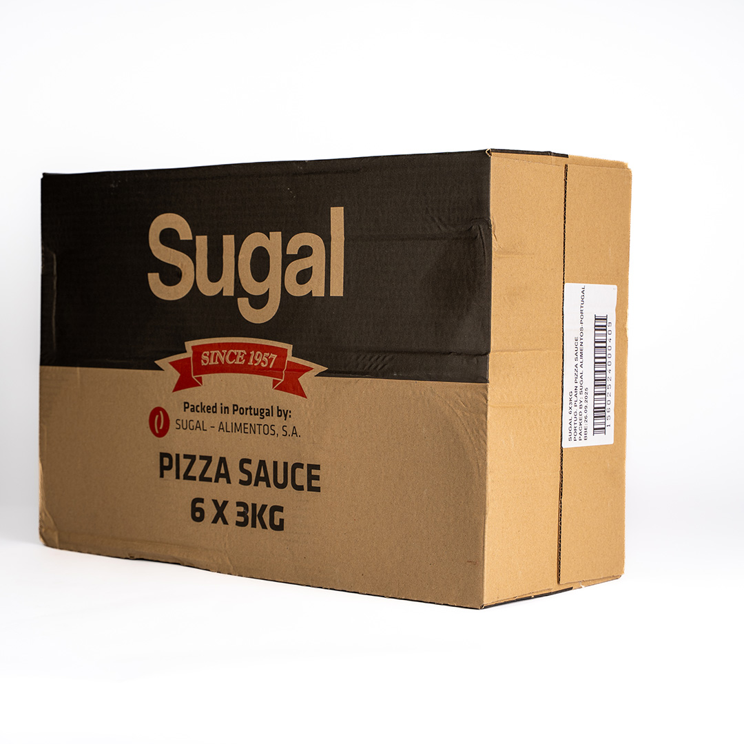 Sugal Pizza Sauce in a 6 Ă— 3kg pack, made from quality tomatoes for a rich and authentic pizza base flavour. Ideal for pizzerias, takeaways, and foodservice.